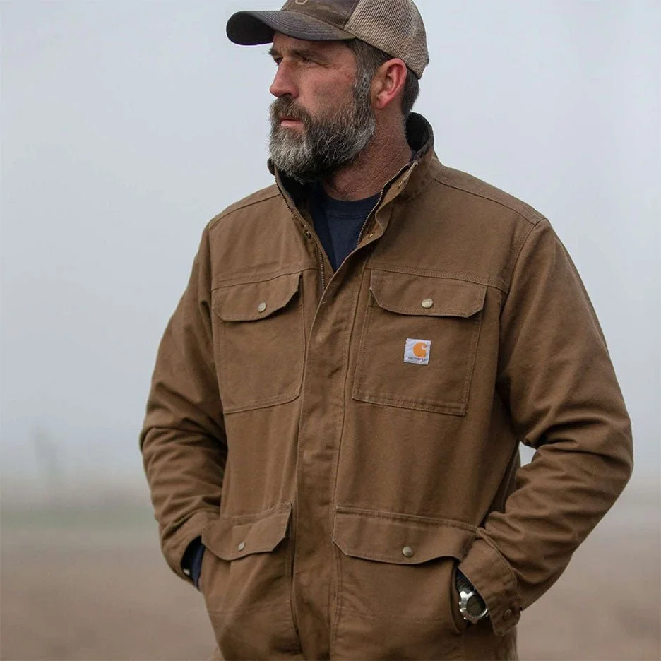 Carhartt is a company that designs, manufactures, and markets workwear. It offers outerwear, hunting gears, twill workwear, accessories, knives, bibs and coveralls, shirts, scrubs, thermals, pants and jeans for men; and outerwear, shirts, pants and jeans, accessories, thermals for women. The company also provides jackets, sweatshirts, shirts, body shirts, pants, bibs, shorts, sets, hats, socks, and diaper covers, T-shirts, overalls, and dungarees for boys, girls, infants, and toddlers; as well as work bags, seat covers, jackets, coats, canvas and duck shorts and pants, woven shirts, thermal underwear, shorts and sweats, and caps.